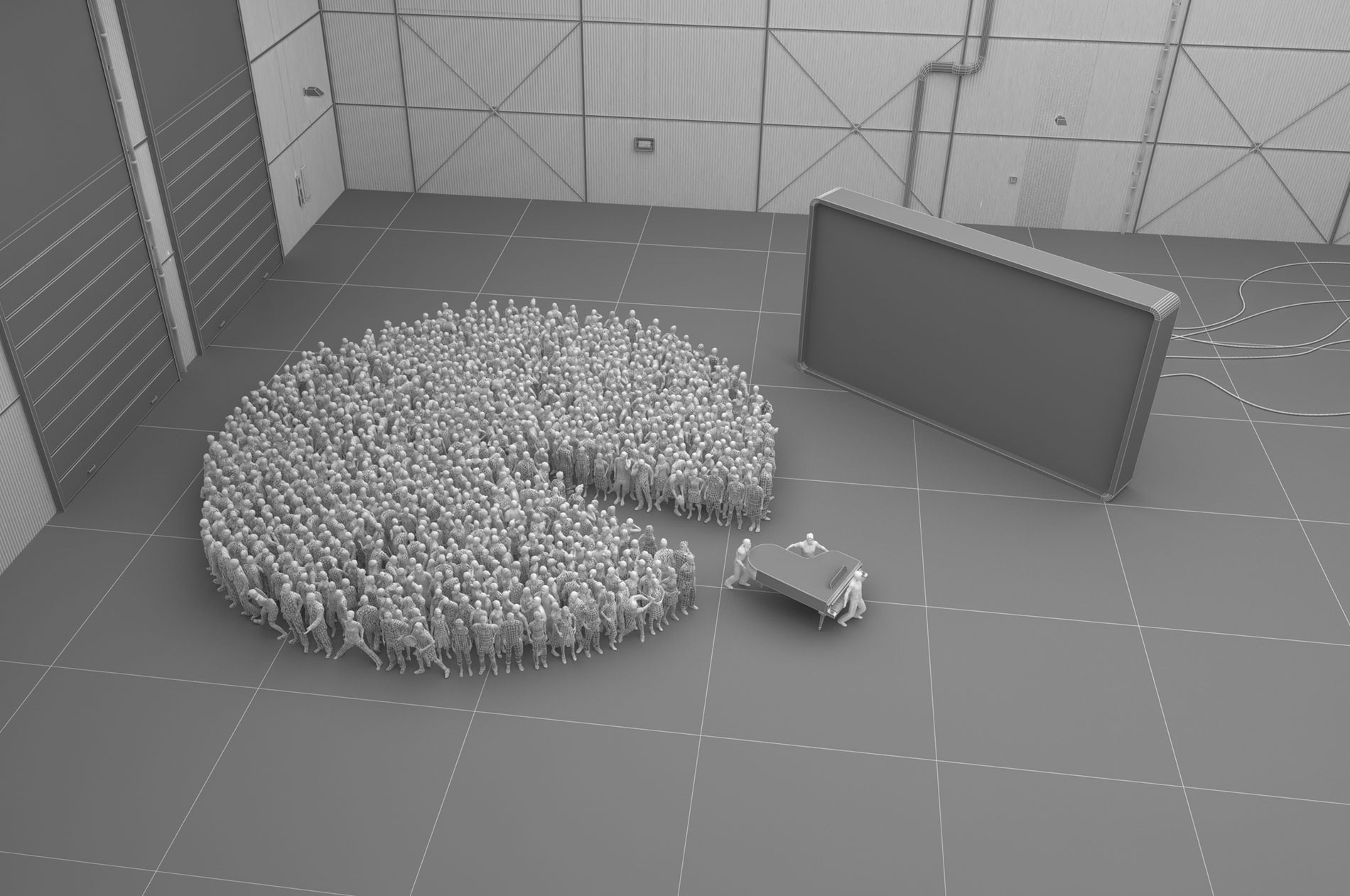 Desarrollo integral de gráfica 3D, modelado, luminación, aplicación de texturas y renders.